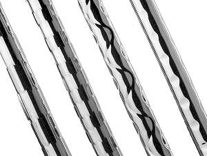 ![]() Decorated handle coated with bright resin or plastic. | ![]() Chromium plated decorated handles. |